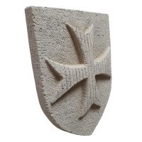 Blason des templiers, blason massif de 4 cm d'épaisseur, blason en pierre reconstituée, blason moulage de pierre, blason de 35 cm de hauteur, blason de pierre.